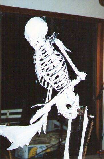 At the appropriate time in the song, I would approach the coffin and knock on it, then Rob would pull the string on his foot that released the lid on the coffin. The lid would open, the metal thing literally sprung into life, lifting the skeleton to a stand up position it reached up about nine feet!! Once again, at the appropriate time, Rob would pull the second string which would cause the skeleton to lift one arm with a handkerchief in it’s hand and wipe it’s skeletal brow. It was really very good. That’s just an example of the sorts of things Rob was capable of doing…